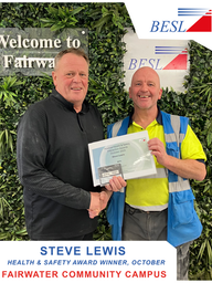 We are pleased to recognise our October Health & Safety awards winners at Fairwater Community Campus. Their commitment to maintaining excellent standards across the Fairwater Community Campus site has been greatly appreciated.